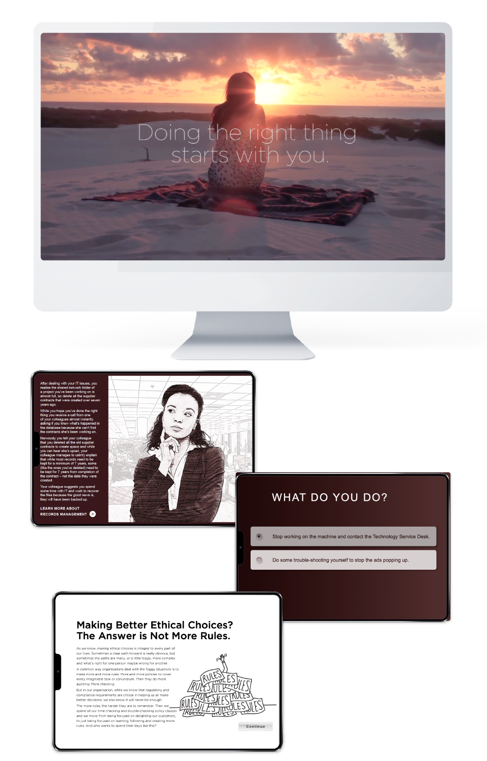 The programme includes human-centred films and manifestos, graphic scribes to showcase psychological insights and a series of complex branching scenarios that allow people from all levels and roles to learn more about how doing the right thing is the right thing to do, for everyone.