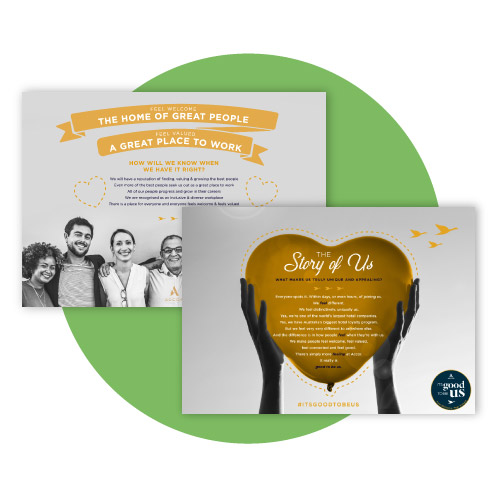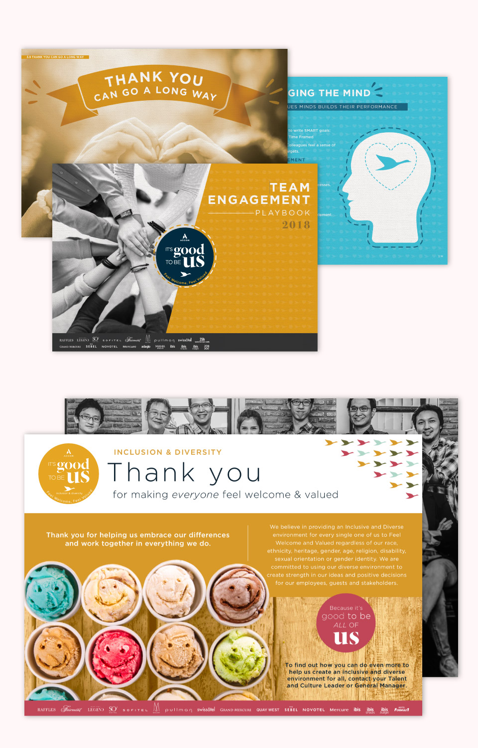 Creating an inspiring and authentic employee value proposition means really getting to know an organisation and its people. Working with the Accor Talent & Culture team we crafted the internal brand, “It’s Good to Be Us”, which team members use on everything from internal announcements to social media.